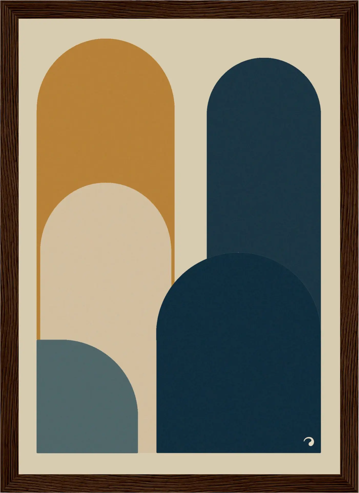 Avec “Arches Solares”, apportez l’élégance méditerranéenne à vos murs. Ses arches aux tons sable, bleu et doré rappellent la lumière et les volumes architecturaux du Sud. Une affiche abstraite au style minimaliste, parfaite pour sublimer un salon, un bureau ou une chambre.