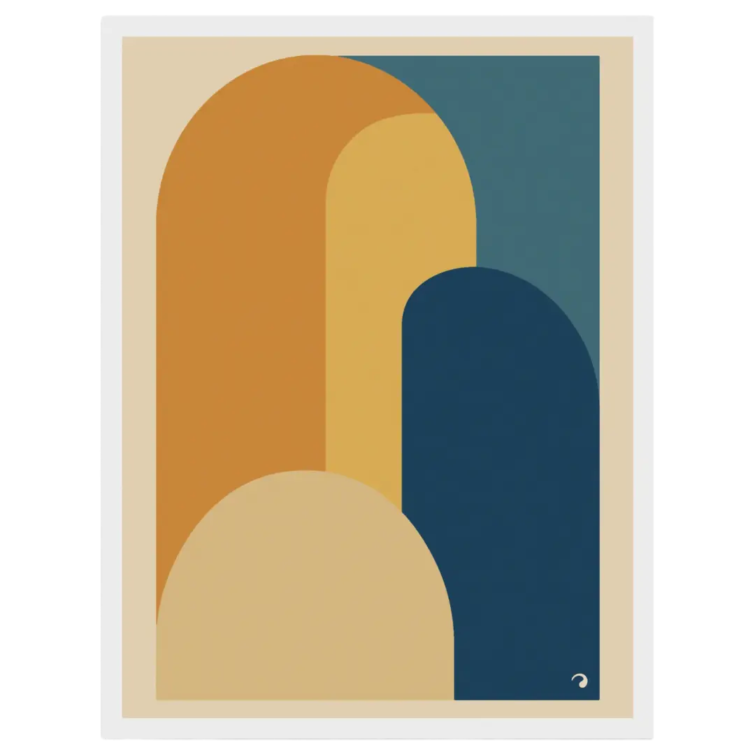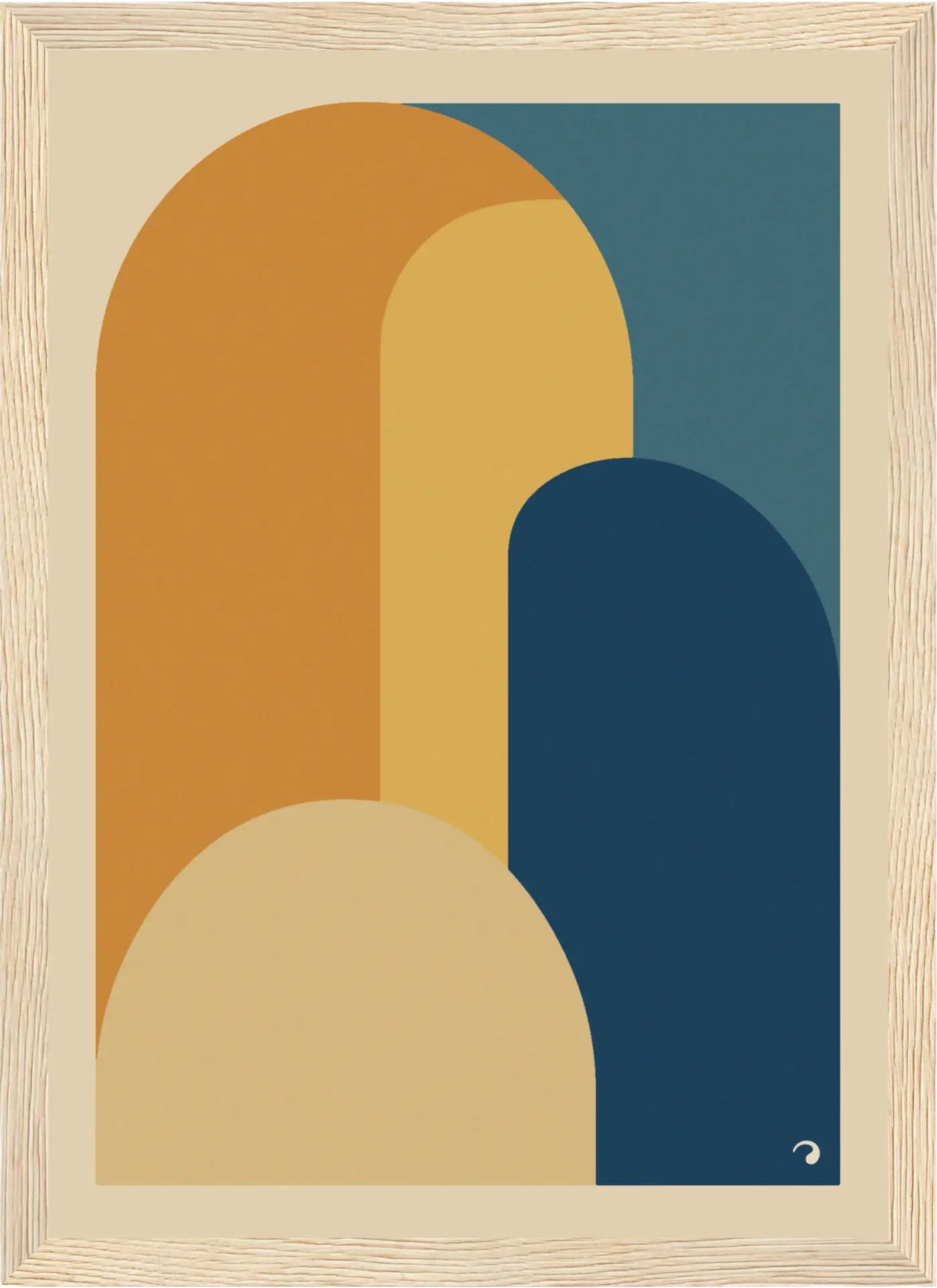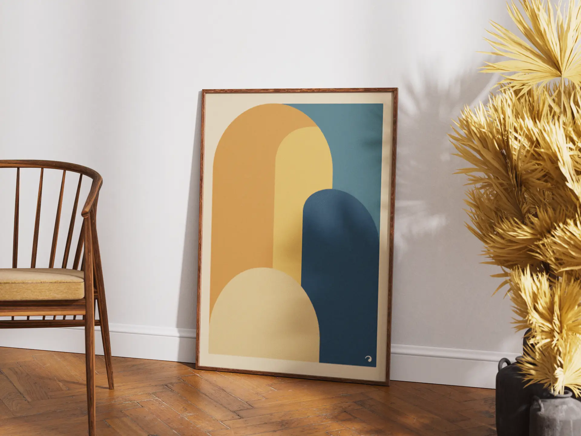Plongez dans l’élégance minimaliste de la Méditerranée avec “Montagne Dorée”, une affiche abstraite signée Onda Studio.